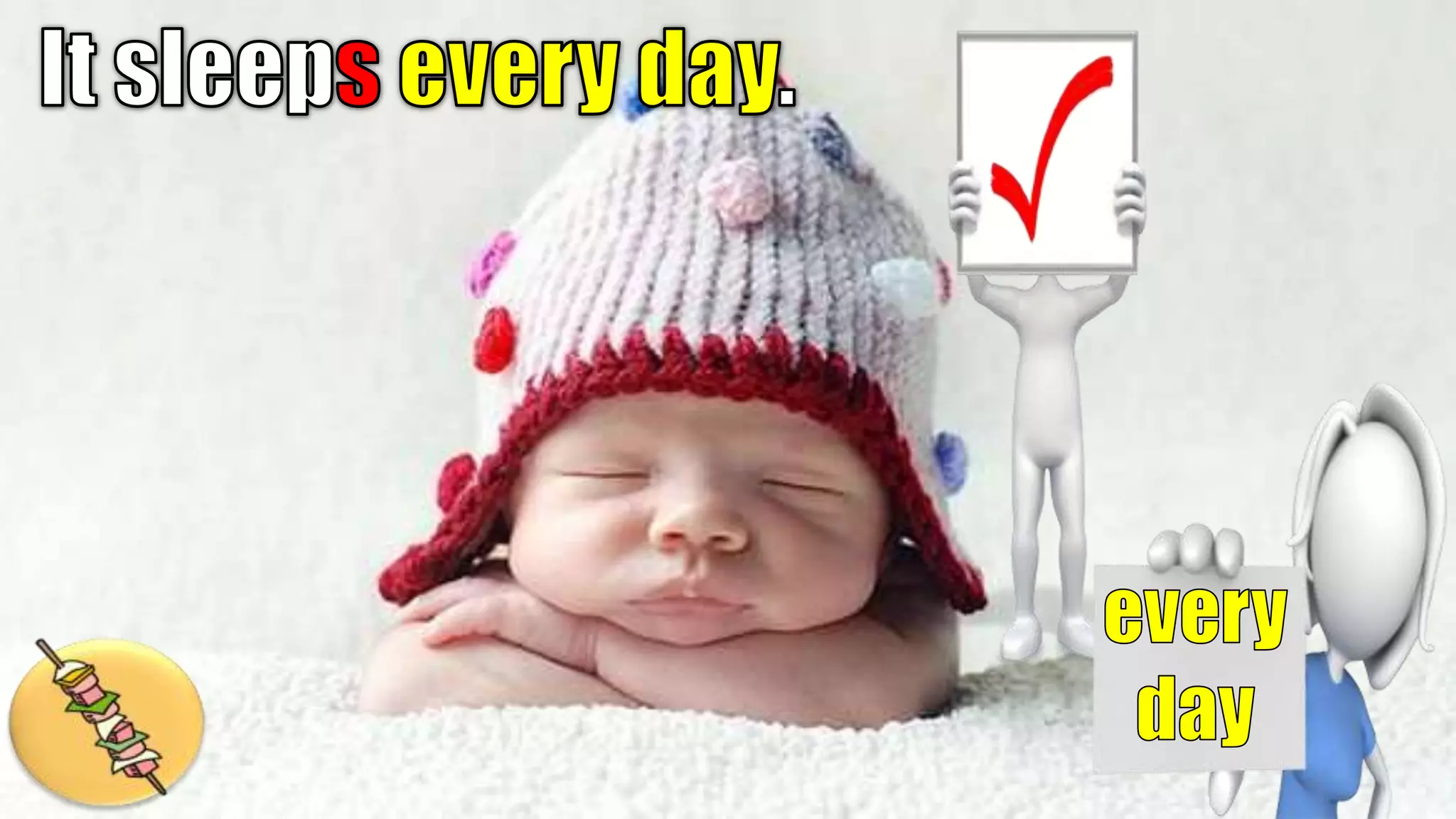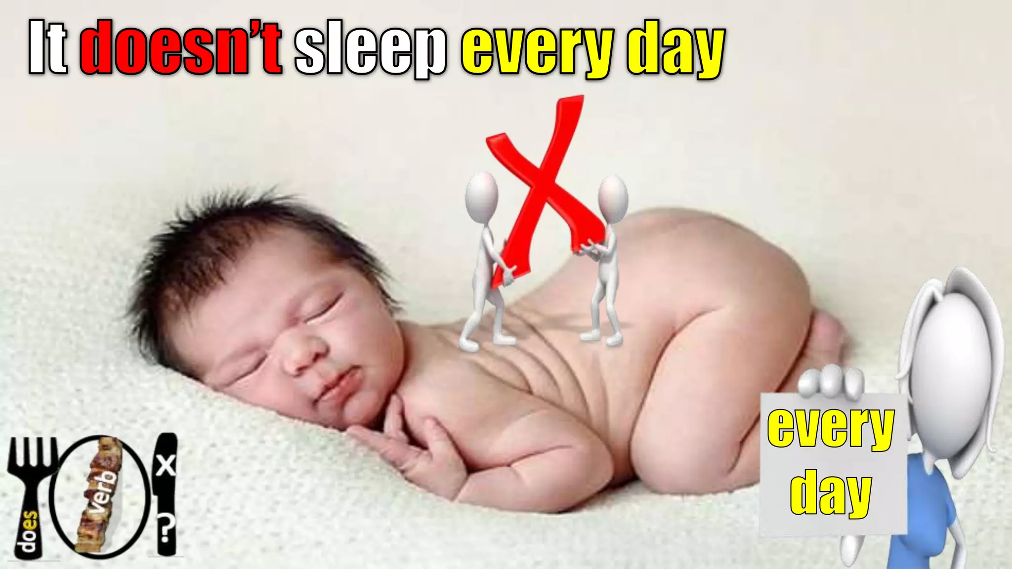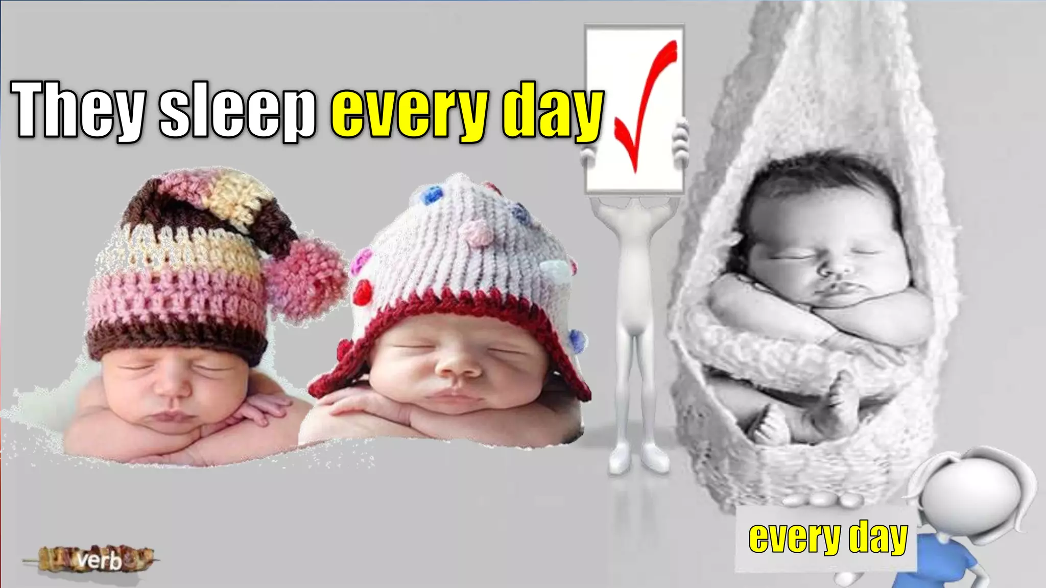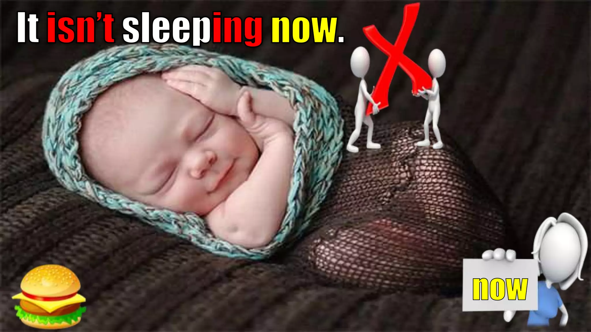This document discusses verb tenses, specifically the simple present, present continuous, and simple past tenses. It provides the example sentence "It is sleeping now" to illustrate the present continuous tense, showing an action that is occurring in the present moment.