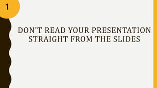 This document provides tips for creating better PowerPoint presentations. It recommends not reading slides verbatim, following the 5-5-5 rule for content, considering the audience, using readable fonts and colors, limiting animations, and sparingly using animations to enhance the presentation. It then describes a performance task that requires students to create a PowerPoint presentation about themselves, including title and conclusion slides and 5-10 body slides with requirements like customizing slides, using different layouts, adding images, and applying transitions and animations.