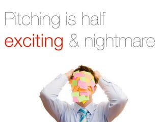 The document provides tips for developing a simple slide presentation for a startup pitch, emphasizing focusing the presentation on the core message through clear visuals and storytelling, keeping the presentation concise between 12-20 slides for a 15 minute pitch, and using techniques like varying font size and type to draw attention to the most important points. Key recommendations include focusing on the opportunity and solution, conveying differentiation, and utilizing images, fonts, colors and proximity to improve retention of the pitch.