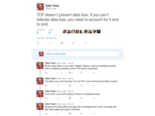 The document is a presentation by Tyler Treat discussing the complexities of distributed systems and the importance of simplicity in addressing these challenges. It highlights how Workiva utilizes NATS for high-performance messaging while emphasizing the need for realistic expectations around message delivery guarantees in complex environments. The speaker advocates for embracing chaos and prioritizing availability and simplicity in system design to enhance overall performance and scalability.