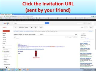 A user receives an invitation URL from a friend to register for a new service, they fill out the registration form and submit it. Then they check their email, including the spam folder, for a verification email from the service in order to complete registration. Once verified, the user can login using their email as the login ID and the password they created.