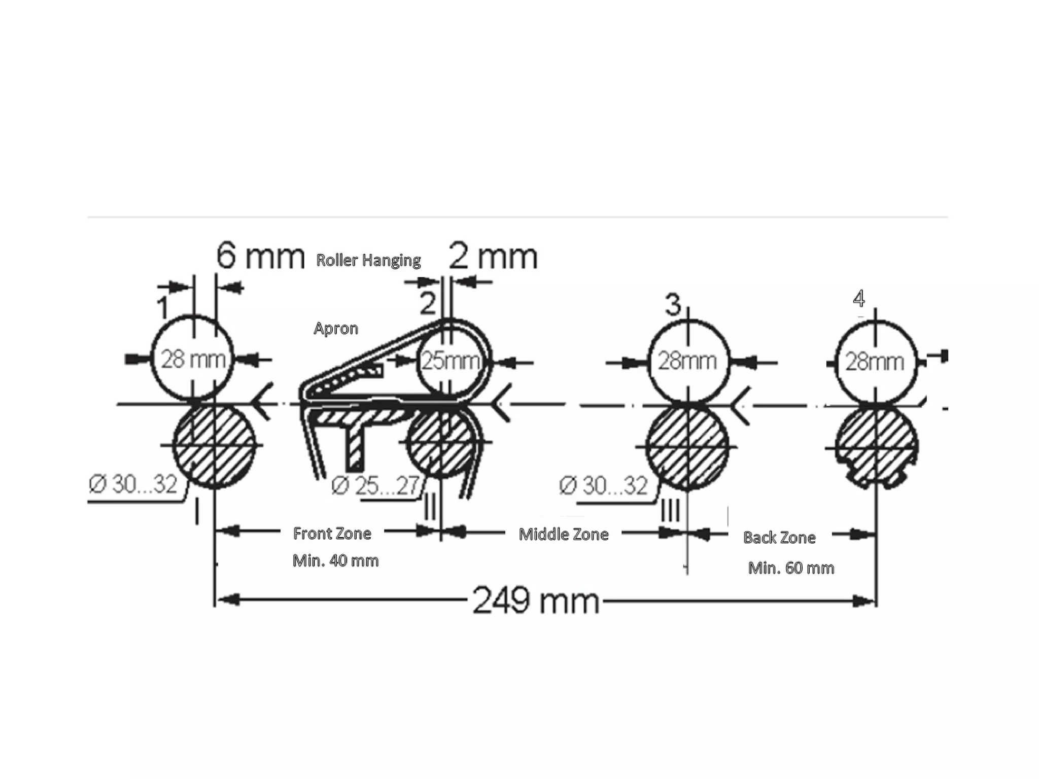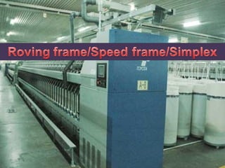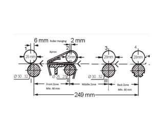 - Roving bobbins are fed into the drafting system where they are attenuated to the final yarn count. The drafting system plays an important role in yarn uniformity.