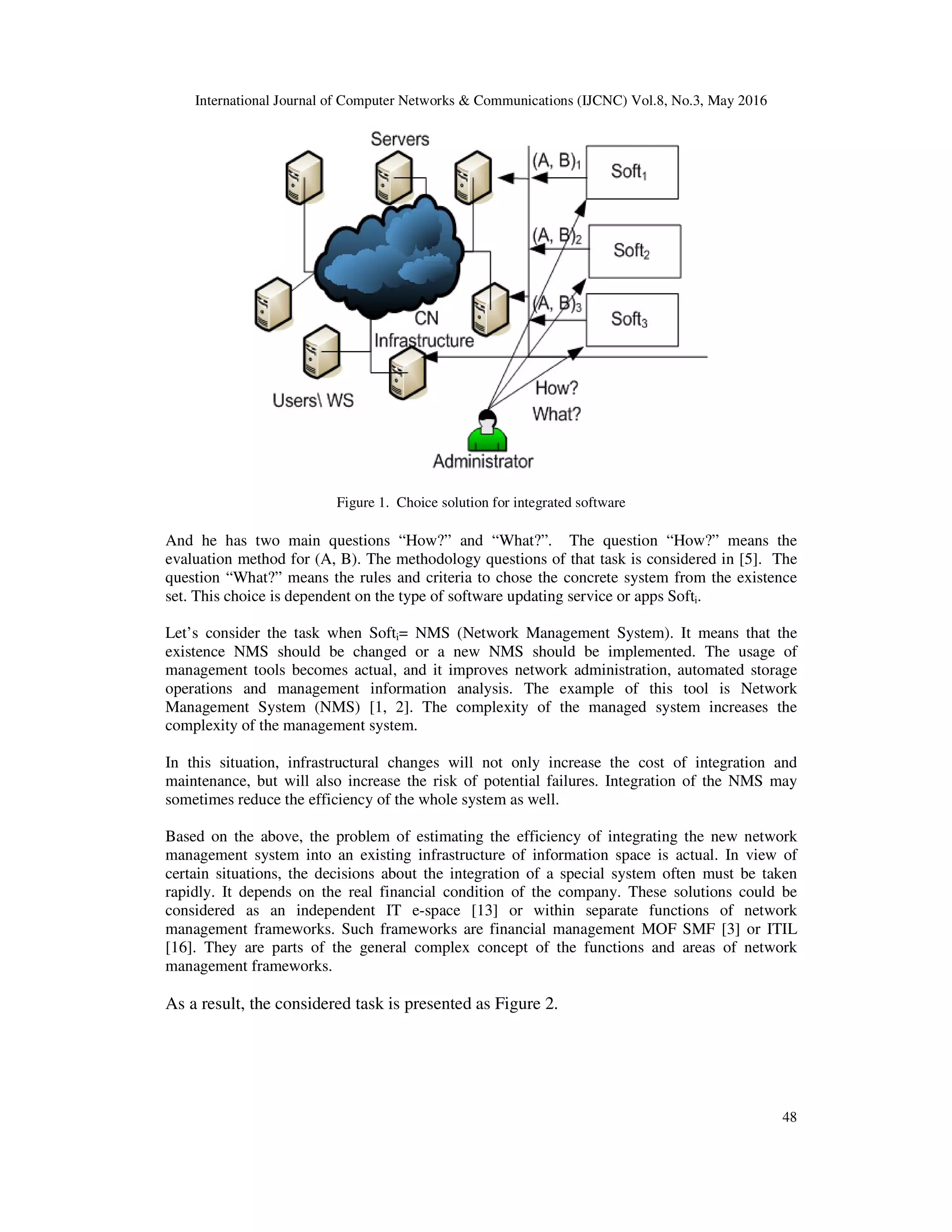 This document proposes a simplified method for evaluating and selecting a network management system (NMS) for integration into an existing computer network. The method evaluates NMS options based on 3 criteria: 1) the level of integration risk, 2) the expected increase in network maintenance effectiveness, and 3) the level of management tasks completed by the system. Each criterion is evaluated on a standardized scale of 0 to 2. The scores are combined to calculate an overall value for each NMS, with the highest scoring option selected for integration. The method aims to provide a rapid evaluation that does not require extensive expertise, resources or time.