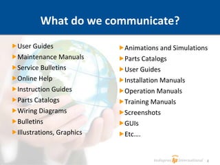The document discusses the importance of using Simplified Technical English (STE) for clear communication in technical documentation to ensure safety, reduce costs, and improve usability. It highlights real-world case studies demonstrating significant cost savings and quality improvements achieved by companies implementing STE and standardized terminology. Additionally, it outlines the benefits and implementation strategies for adopting STE, emphasizing efficient authoring and translation processes.