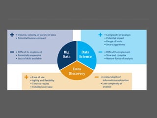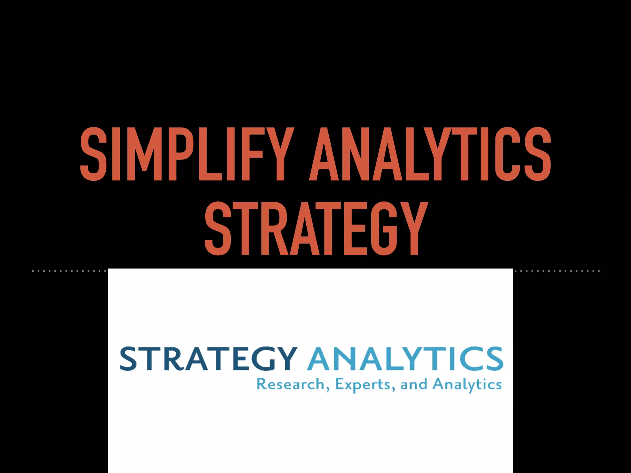 The document outlines a simplified analytics strategy aimed at improving business outcomes through faster insights and execution in a hybrid tech environment. It emphasizes the need for data to be accessible, visually appealing, and actionable to drive business intelligence and customer targeting effectively. It also discusses various approaches to analytics, including both hypothesis-driven and discovery-based methods, adapting to ever-changing company goals and data dynamics.