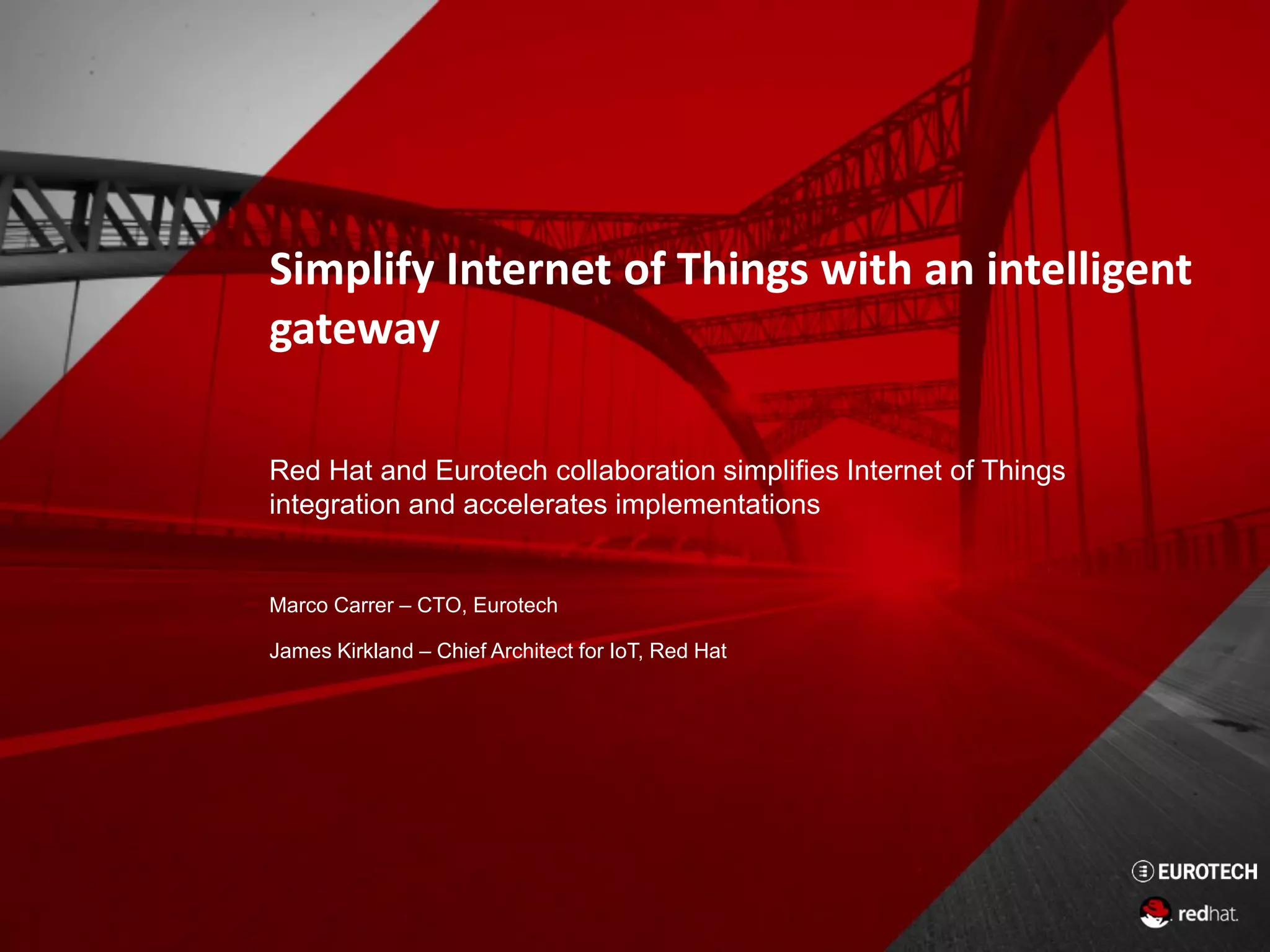 Red Hat and Eurotech collaborate to provide a comprehensive Internet of Things (IoT) solution, addressing the challenges of integrating operational technology (OT) with information technology (IT) through their intelligent gateway. This partnership enables seamless device management, data transformation, and real-time analytics while aiming to improve cost efficiency and time-to-market for enterprises. The document highlights various use cases, architectures, and the importance of software-defined gateways in enhancing IoT implementations.
