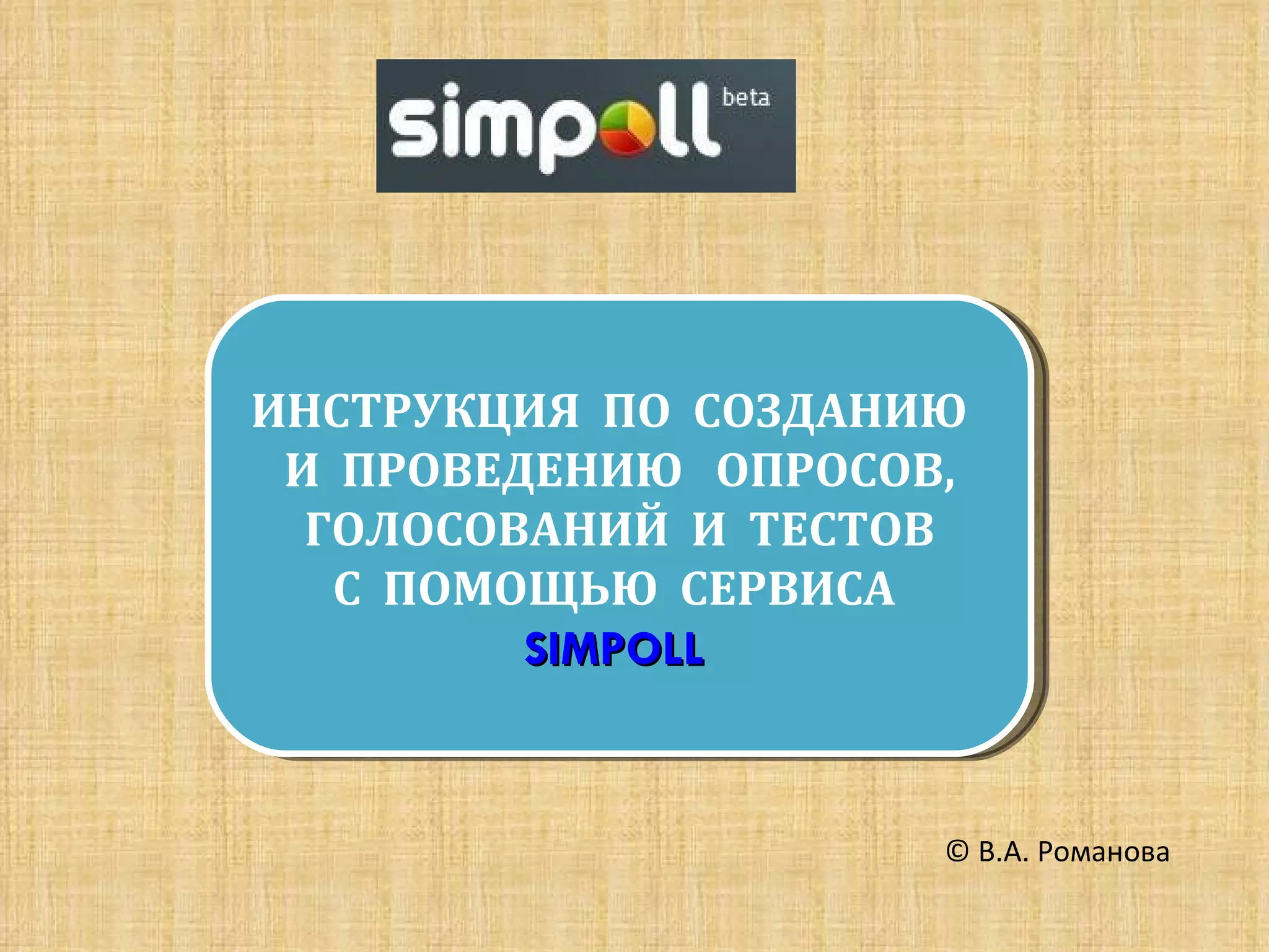 Документ содержит инструкцию по созданию и проведению опросов, голосований и тестов с использованием сервиса Simpoll. В нем описывается процесс регистрации аккаунта, создания опроса, выбора типов вопросов, а также настройки внешнего вида и параметров опроса. Также предоставляются советы по заполнению опросника и сортировке вопросов.
