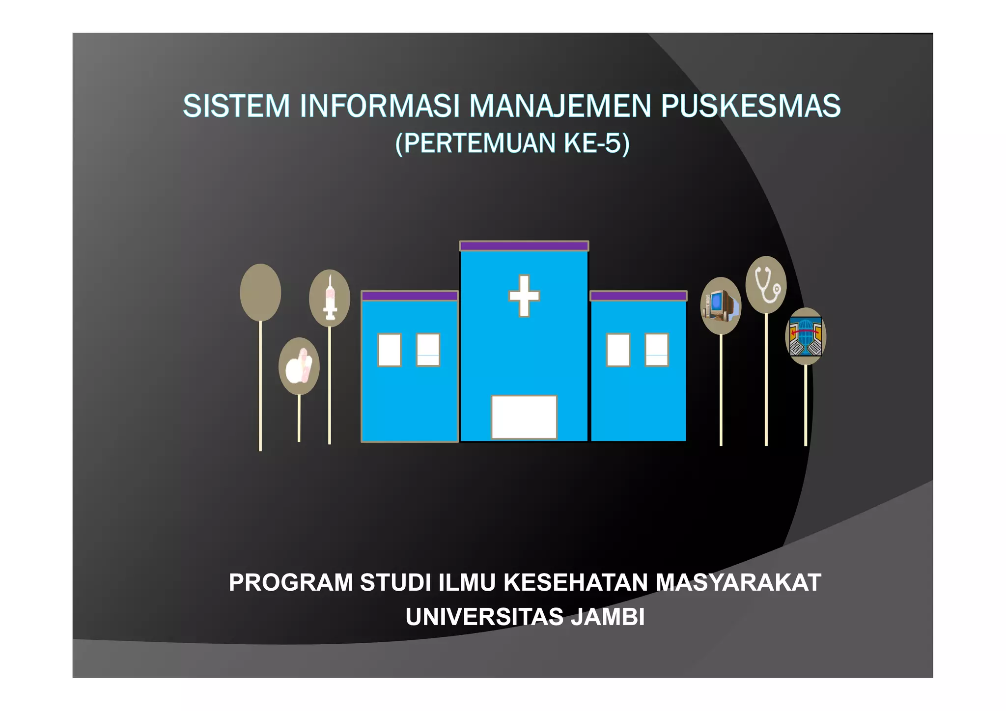 Dokumen ini membahas sistem informasi manajemen puskesmas (Simpus) di Universitas Jambi yang bertujuan untuk meningkatkan manajemen puskesmas melalui pengolahan data kesehatan. Simpus diharapkan dapat menyederhanakan pelaporan, meningkatkan efisiensi administrasi, dan menyediakan informasi terkini untuk pengambilan keputusan. Namun, terdapat tantangan dalam pengelolaan data seperti duplikasi dan ketidakakuratan informasi.