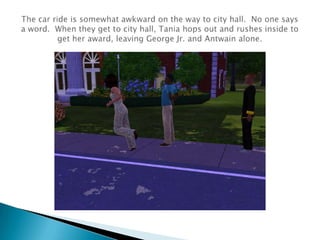 The car ride to city hall is tense, but George Jr. and Antwain bond over their mutual respect for Tania, who receives a photography award. As they engage in heartfelt conversation, George Jr. opens up about his struggles and feelings, leading to a deeper understanding between him and Tania. By the end of the day, a long-awaited hug symbolizes their newfound friendship.