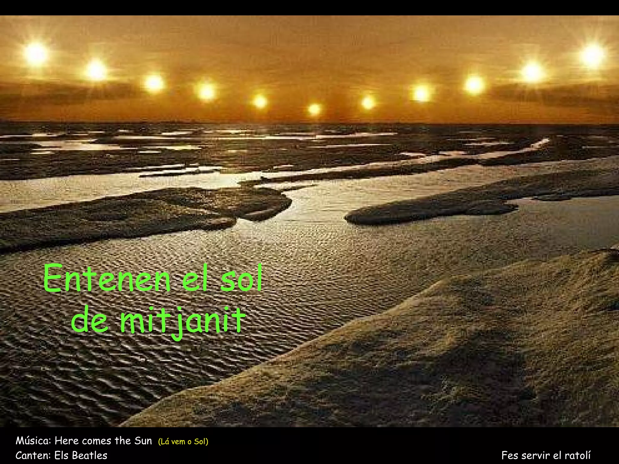Entenen el sol de mitjanit Música: Here comes the Sun (Lá vem o Sol) Canten: Els Beatles Fes servir el ratolí