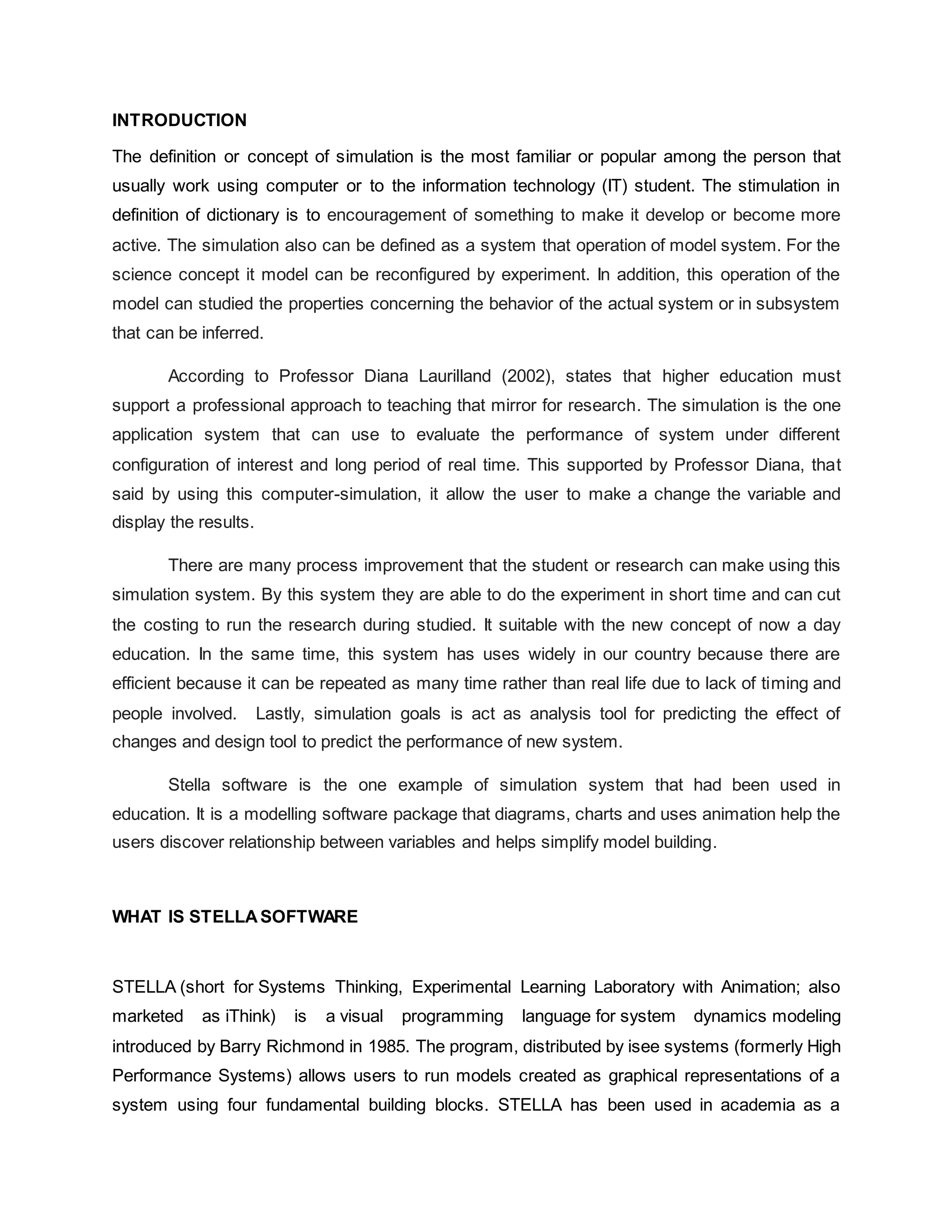 The document discusses the use of simulation software Stella in education. It provides an example of using Stella to model the relationship between owl and rat populations and the impact on palm oil resources. The summary explores the benefits and disadvantages of using simulations in education. Simulations allow experimenting and understanding variable relationships at a lower cost compared to real experiments. However, they require expensive software and trained teachers. They also may not reflect real-world consequences of mistakes.