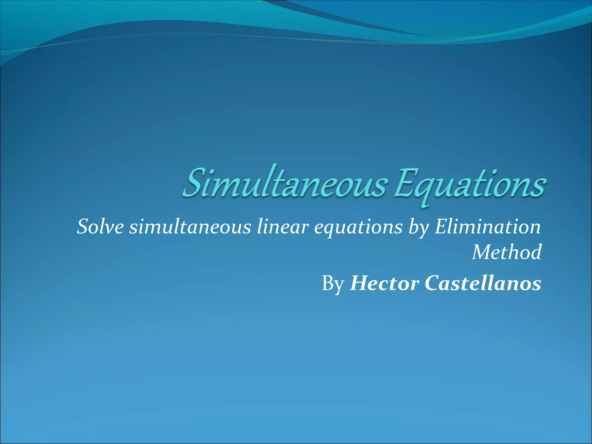 The document outlines the elimination method for solving simultaneous linear equations, illustrated through two equations with differing coefficients. It details the steps required to equalize coefficients and eliminate variables, ultimately solving for x and y. The solution proves consistent with both initial equations, confirming the process's accuracy.