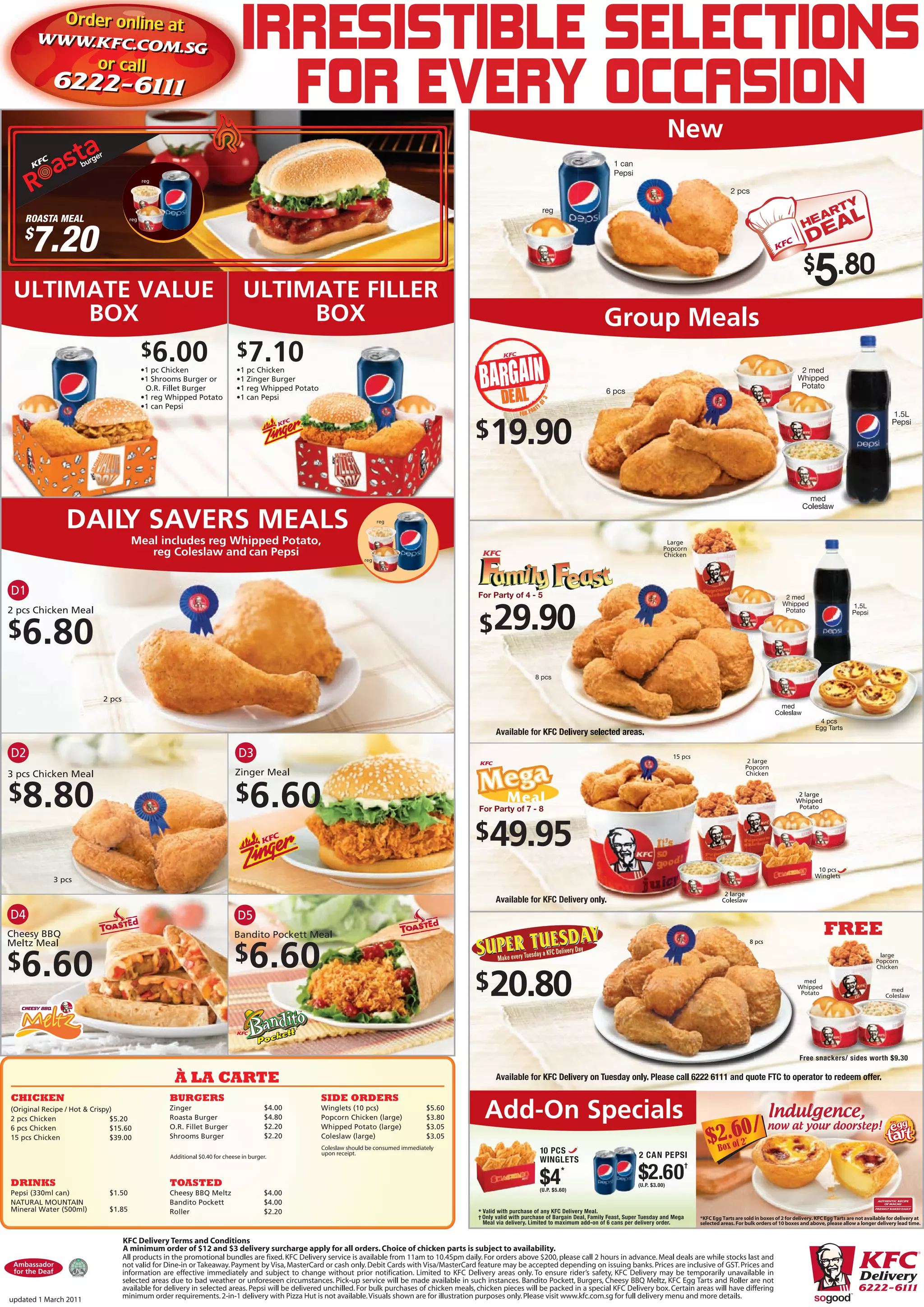 KFC delivery menu. for more, check out http://sgcgo.com/kfc-delivery/