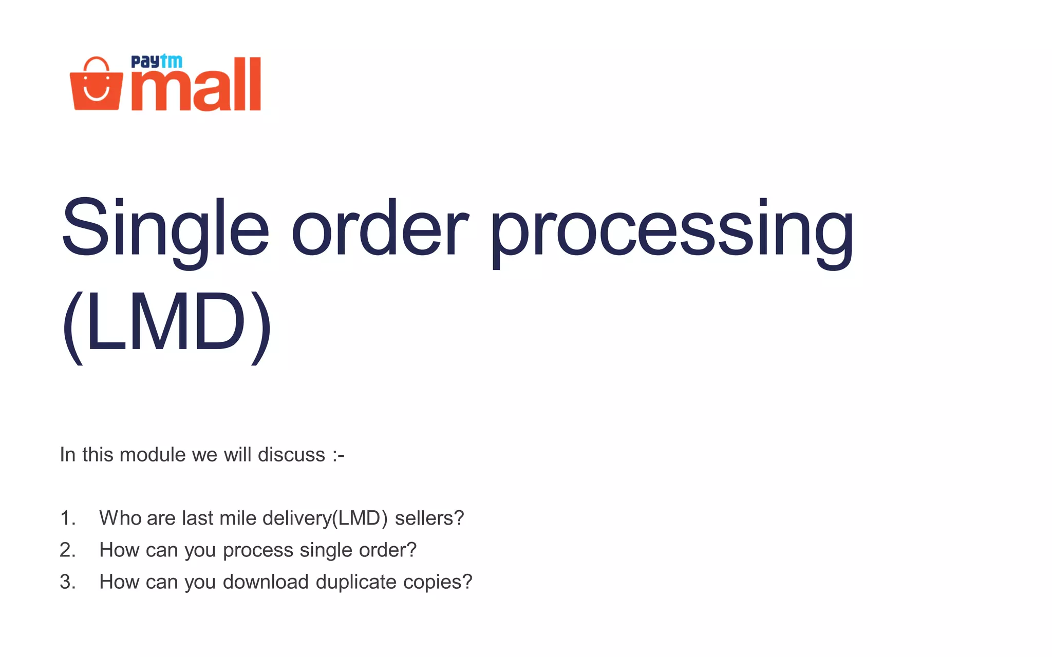 The document outlines the process for last mile delivery (LMD) sellers using Paytm Mall, detailing steps for order processing, including confirming, packing, and requesting pickups. It also provides guidance on generating packing slips and manifests, along with important notes such as using the Paytm Mall retail invoice and the implications of manifest generation timing. Additionally, there are instructions for downloading duplicate copies of packing slips and manifests if needed.