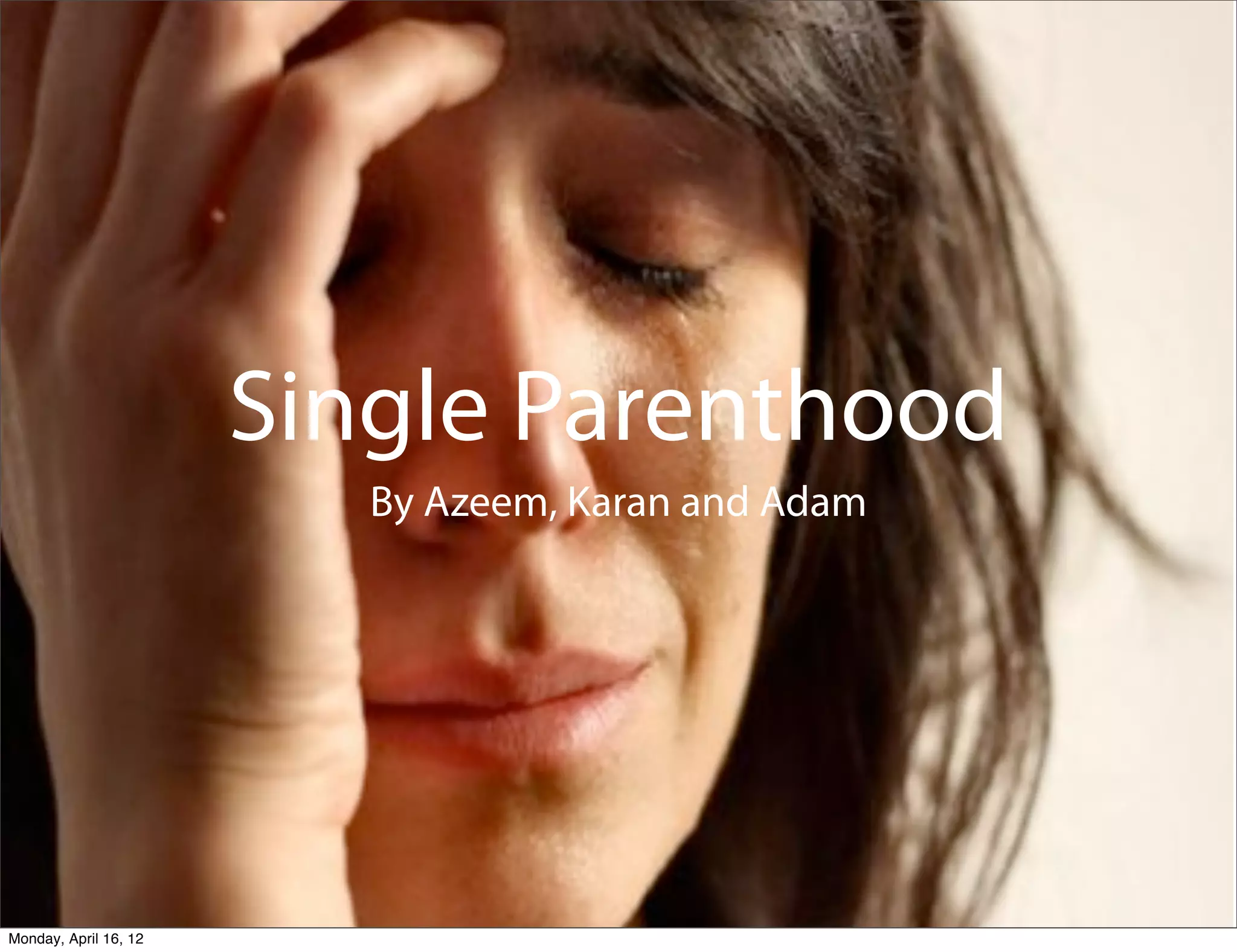 The document discusses single parenthood, which occurs when a child is cared for by one dominant parent. Common causes include a boyfriend leaving after a pregnancy, divorce where one parent doesn't want the children, and pre-marital pregnancy. Challenges for single parents include making ends meet, power struggles, visitation, and joint custody issues. Some assistance programs that help single parents include monetary support, child care subsidies, low income home energy assistance, WIC, and TANF. The document suggests helping single parents through donations to give them more time with their children or encouraging them to remarry.