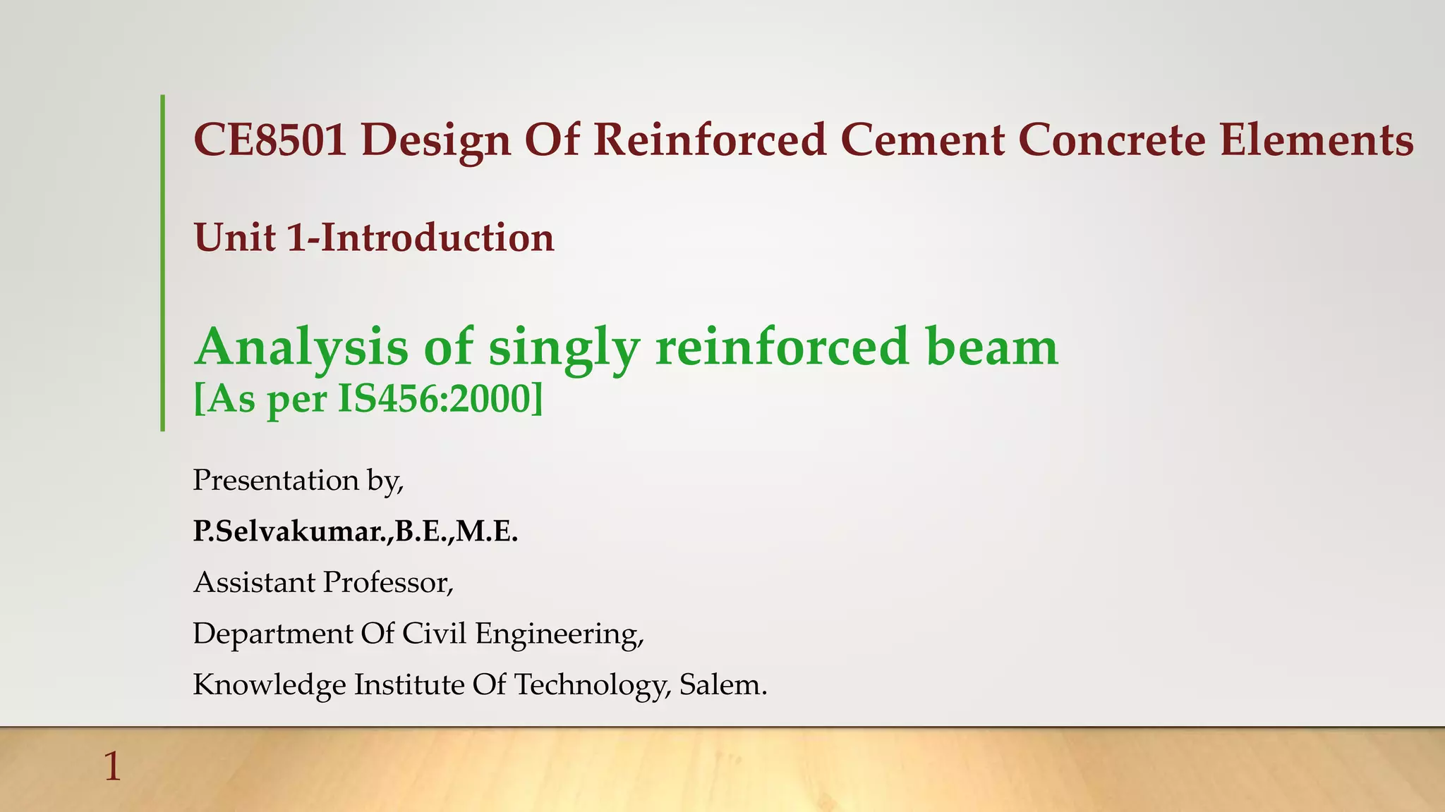 1) The document discusses the analysis and design of singly reinforced concrete beams according to Indian Standard Code IS 456:2000 and SP-16. It provides formulas and steps to calculate the limiting moment capacity, check if the section is under-reinforced, balanced or over-reinforced, and determine the required area of tension reinforcement.