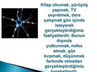 Kitap okumak, yürüyüşyapmak, TV seyretmek, ders çalışmak gün içinde isteyerek gerçekleştirdiğimiz faaliyetlerdir. Bunun dışında yutkunmak, nefes almak, göz kırpmak, düşünmek farkında olmadan gerçekleştirdiğimiz hareketlerdir.