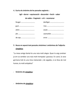 5. Busca en aquest text paraules sinònimes i antònimes de l’adjectiu