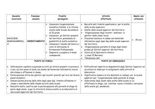 Il documento riassume le relazioni dei docenti con funzioni strumentali per l'anno scolastico 2012/2013, evidenziando che gli obiettivi educativi sono stati raggiunti nonostante la riduzione delle ore e dei finanziamenti. Vengono presentate varie funzioni, attività svolte, punti di forza e debolezza per ciascun docente, indicando i risultati ottenuti sia in ambito sportivo che educativo. Ricorrono temi di collaborazione con le famiglie e le istituzioni locali, con l'obiettivo di potenziare l'esperienza scolastica degli alunni.