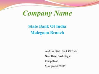 2) The study examines job satisfaction among employees of the Malegaon branch of State Bank of India. Factors like remuneration, training, communication, goals, teamwork, and work environment were assessed.