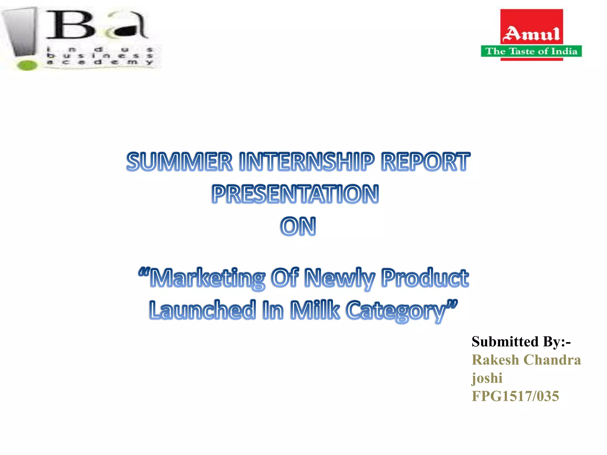 Amul is introducing two new products: Amul Liquid Creamer and Amul Lactose Free Milk. Amul Liquid Creamer is a shelf-stable dairy creamer as an alternative to milk powder. It will target hotels, airlines, and offices. Amul Lactose Free Milk is the first lactose-free milk in India targeting people with lactose intolerance. Field research was conducted through store promotions and sampling. Key findings were a lack of awareness about the products' benefits and retailers' dissatisfaction with margins and damaged goods policies. Recommendations include improving supply chain management, providing reasonable margins, and placing Lactose Free Milk in larger 1L cartons.