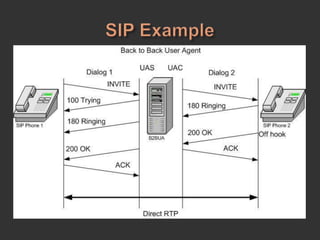 SIP is a signaling protocol used to establish, modify, and terminate multimedia sessions over IP networks. It was originally designed in 1996 to make voice and video calls over IP and has since expanded to support additional applications like instant messaging, file transfer, and presence information. SIP works by defining messages passed between endpoints to initiate, manage, and terminate calls or sessions. It is an application layer protocol that can operate over various transport protocols like TCP, UDP, and SCTP.