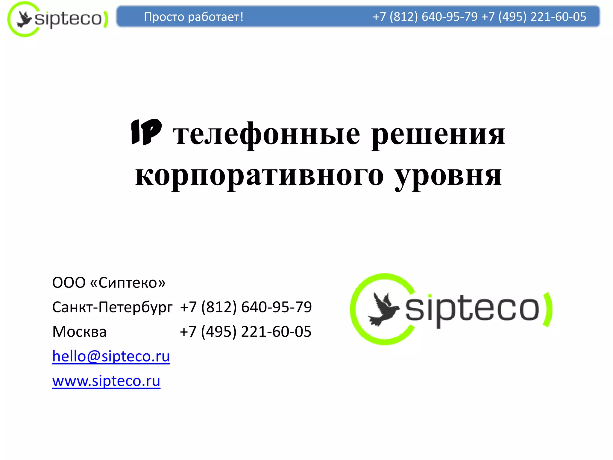 Документ представляет собой предложение услуг компании 'Сиптеко', которая предоставляет IP-телефонные решения для бизнеса, включая мини-АТС и виртуальные АТС. Основное внимание уделяется снижению расходов на связь, повышению качества обслуживания клиентов и увеличению эффективности бизнес-процессов. Указаны различные тарифы и характеристики оборудования, а также преимущества и способы подключения услуг.