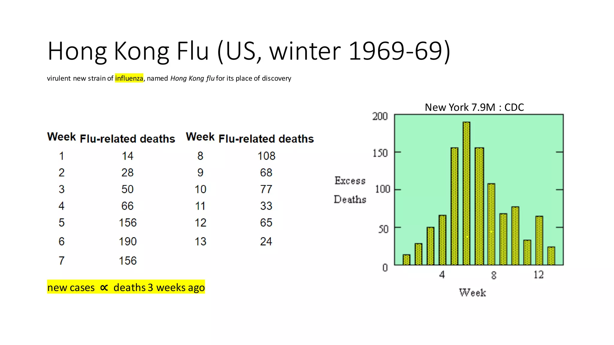 The document discusses the Hong Kong flu outbreak in the US during the winter of 1969-70, detailing its virulence and the mathematical modeling of its spread. It emphasizes the need for herd immunity to halt epidemics, comparing the basic reproductive number (r0) of this flu to historical influenza strains and other diseases. The text also touches on various immunization strategies and the importance of immunity duration in relation to different infections.