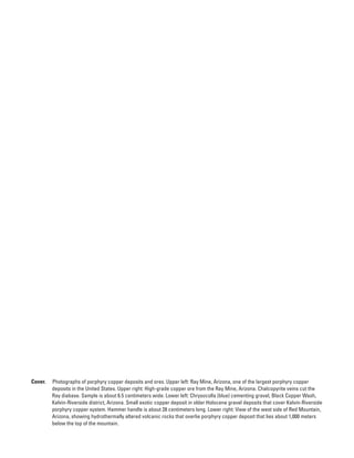 This document provides a summary of the porphyry copper deposit model. It describes porphyry copper deposits as large-scale hydrothermal systems centered on porphyritic intrusions. Key points include: