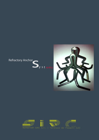 The document discusses refractory anchor systems produced by SIRC for various industries. It describes Series A anchors for brick linings, which include staple anchors in various sizes and shapes. Dimensions and ordering information are provided for popular staple anchor models ASTP1, ASTP2, and ASTP3, along with available alloy types. Standard alloys include 310 stainless steel.