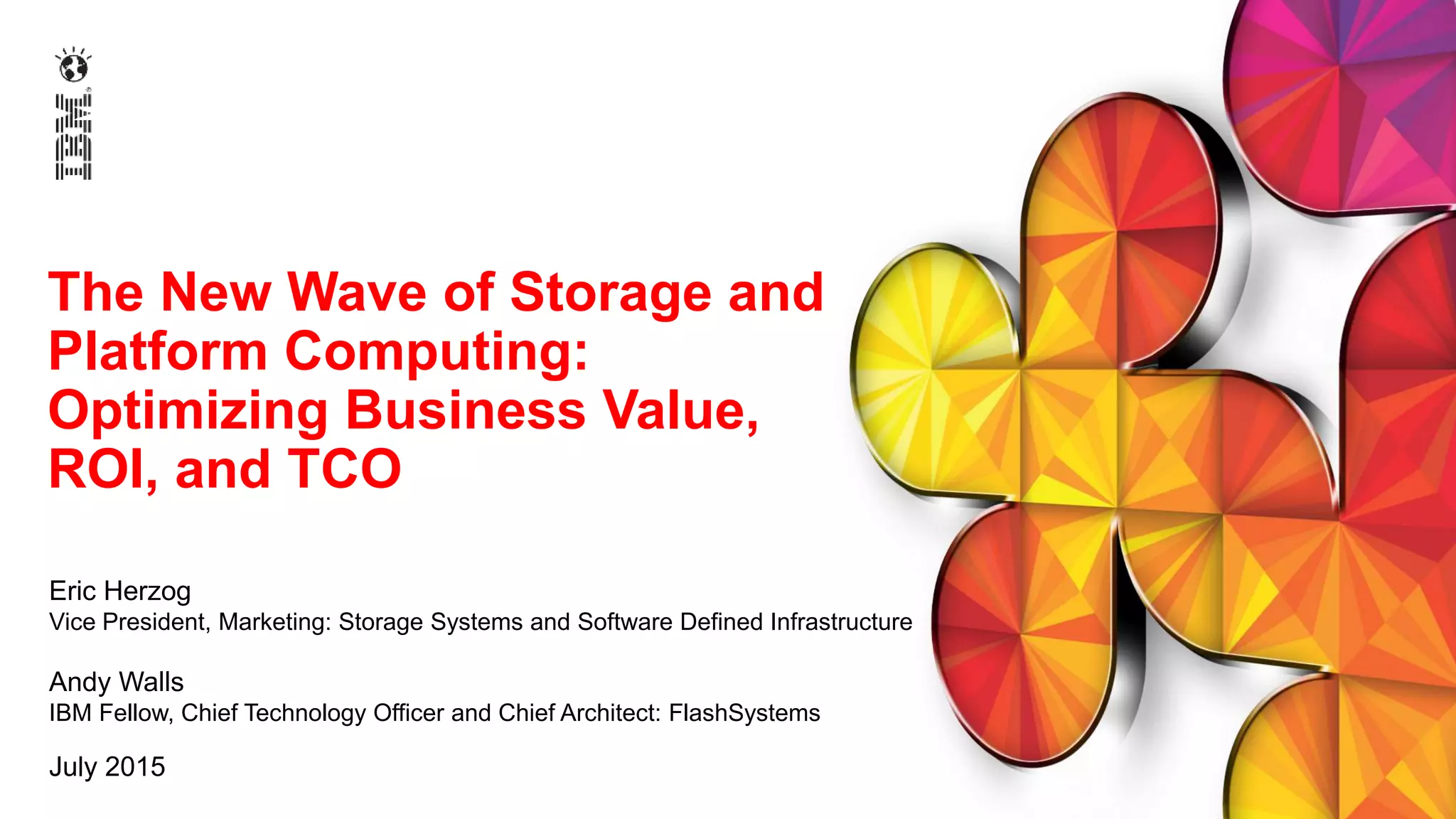2) It introduces IBM's portfolio of software-defined storage and all-flash array solutions that provide agility, control, and efficiency to help customers optimize business value.