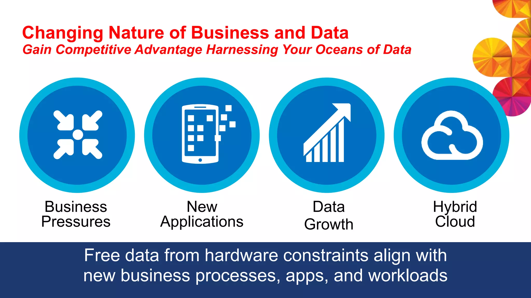 1) The document discusses new trends in data growth, cloud usage, and business demands that are challenging traditional storage approaches.