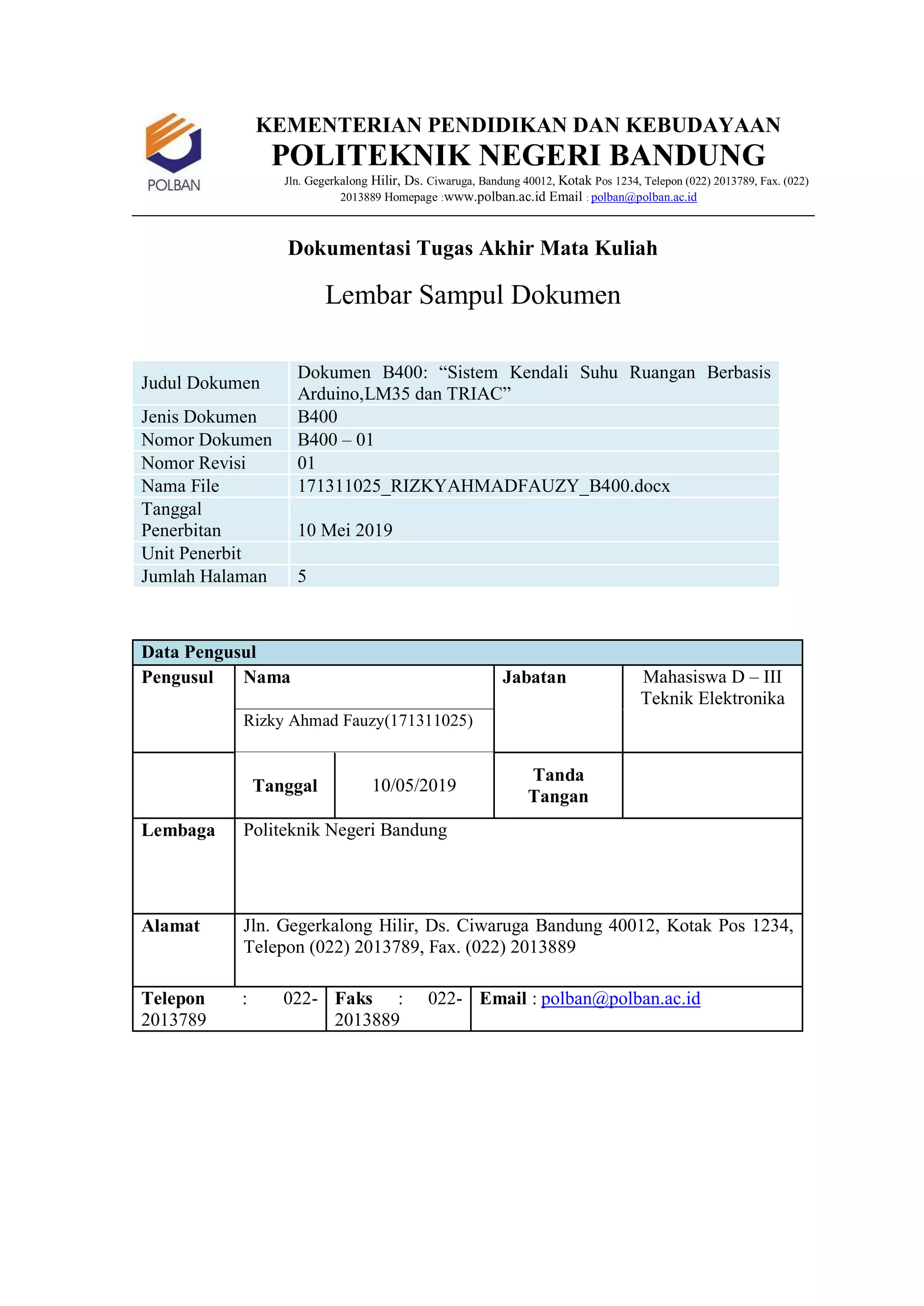1. Dokumen ini menjelaskan proses realisasi sistem kendali suhu ruangan berbasis Arduino, LM35, dan TRIAC dengan pengujian komponen-komponennya.