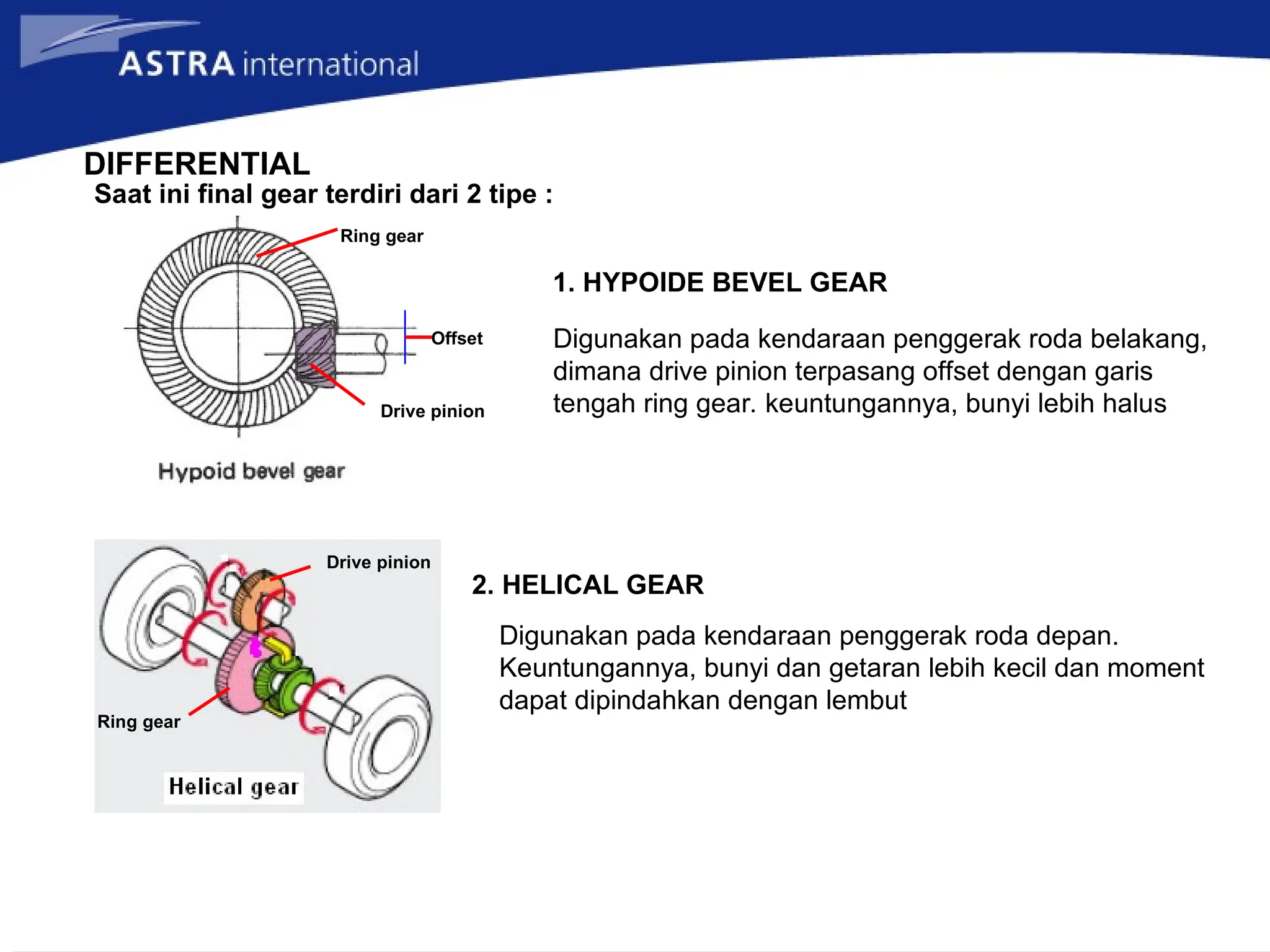 tengah ring gear. keuntungannya, bunyi lebih halus