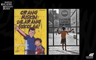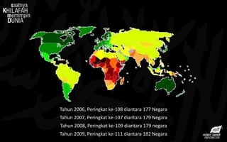 Sistem pendidikan Indonesia mengalami masalah berkelanjutan seperti peringkat pendidikan yang rendah di tingkat internasional, biaya pendidikan yang tinggi, dan kualitas pendidikan yang buruk. Dokumen ini menganalisis masalah-masalah tersebut dan menyarankan bahwa solusi yang tepat adalah menerapkan sistem pendidikan berdasarkan prinsip-prinsip Islam melalui pembentukan khilafah Islam.