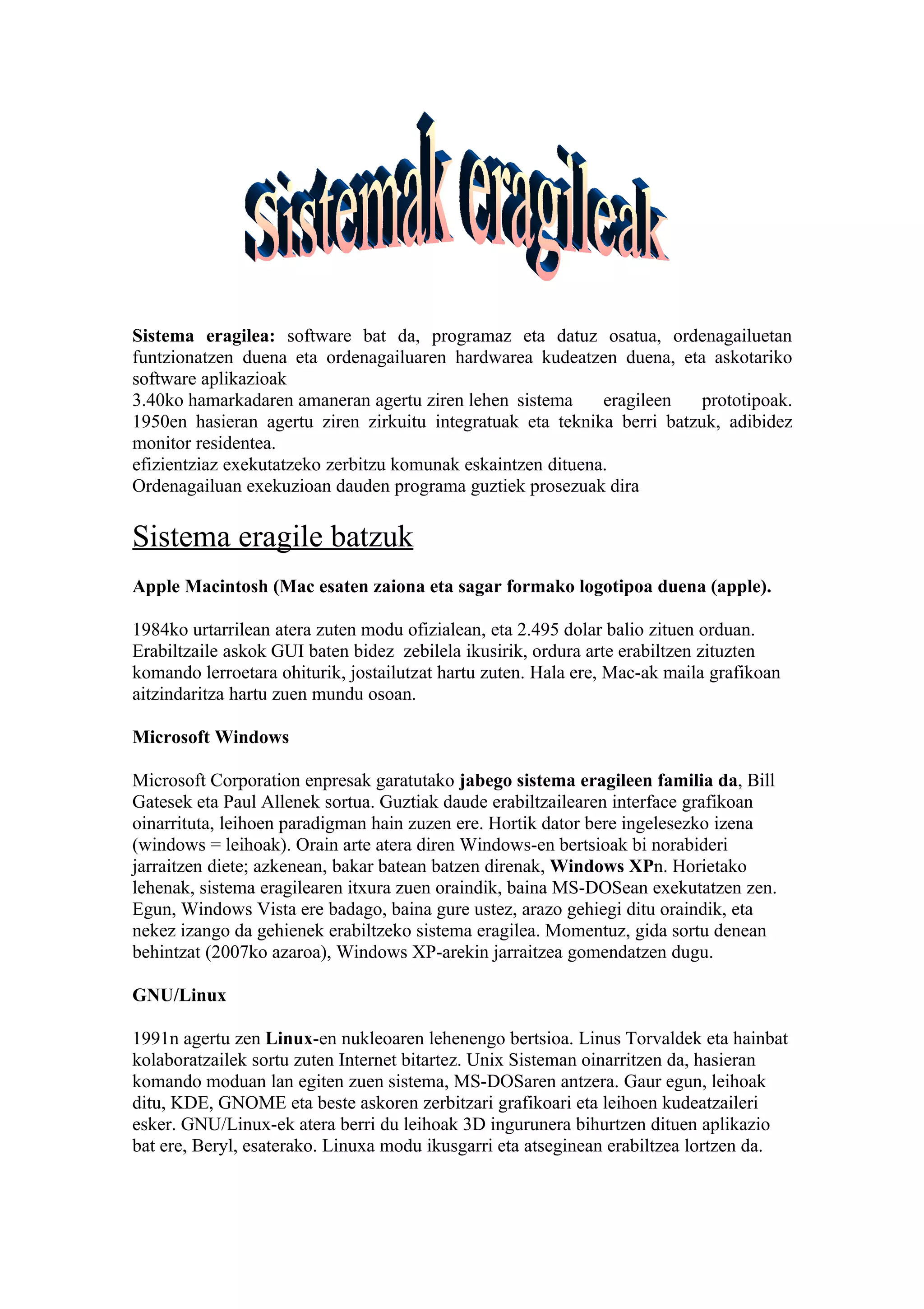 Sistema eragilea: softwarebat da, programaz eta datuz osatua, ordenagailuetan