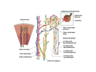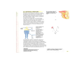 FORMACIÓ DE L’ORINALa funció dels ronyons és filtrar la sang i formar l’orina. La sang entra en els ronyons per una artèria, que es ramifica en múltiples capil·lars, els quals es reuneixen de nou en una vena, que surt dels ronyons. En els capil·lars del ronyons, la sang expulsa les substàncies residuals i una mica d’aigua, les quals formen l’orina. Perquè els ronyons funcionin correctament, convé beure molta aigua. A més, es poc saludable retenir molta estona l’orina a la bufeta.