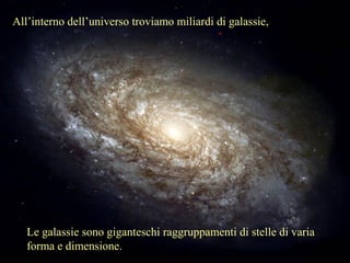 Il documento descrive il sistema solare, evidenziando la Via Lattea come la galassia che lo ospita e il Sole come la stella centrale. Viene fornita una panoramica dei pianeti, tra cui Giove, Saturno, Urano, Nettuno, Marte, Venere e Mercurio, specificando le loro caratteristiche uniche. La Terra è identificata come l'unico pianeta con vita conosciuta.