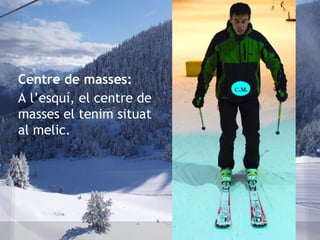-Força de la gravetat. L’esquiador és atret cap a la neu..