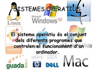 SISTEMES OPERATIUS El sistemaoperatiu és el conjunt dels diferents programes que controlen el funcionament d'un ordinador.