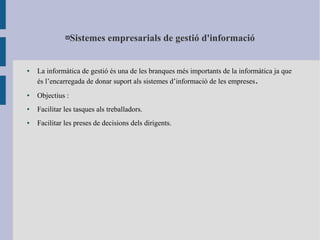 ● La informàtica de gestió és una de les branques més importants de la informàtica ja que