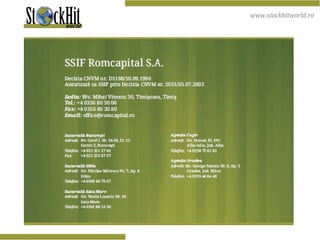 Documentul descrie modulul de grafice al platformei Stockhit World, care permite utilizatorilor să urmărească prețurile a până la 8 instrumente financiare simultan, utilizând diverse tipuri de grafice și instrumente de analiză tehnică. Utilizatorii pot personaliza graficul selectat, modificând intervalul de timp, tipul de grafic și culoarea instrumentelor. De asemenea, există opțiunea de a examina corelațiile dintre instrumente în grafice comparative.