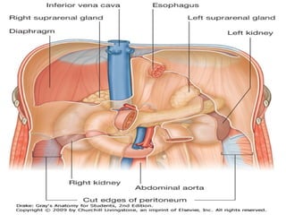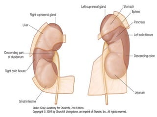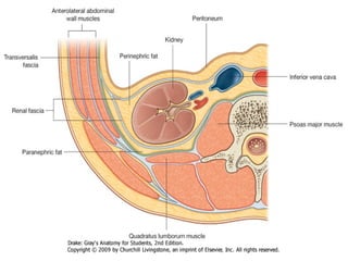 Hub Ginjal denganSisi Posterior Diafragma M. Psoas Major M. Quadratus Lumborum M. Transversus Abdominis Recessus costodiafragmaticus Pada ginjal kanan: Costa XII & ginjal kiri: Costa XI