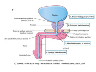Urethra Pria panjangnyakira-kira 13,7-16,2 cm Terdiri dari : pars Prostatica pars membranosa pars Spongiosa. Wanita Panjang kira-kira 3,7-6,2 cm (Taylor), 3-5 cm (Lewis) hanya sebagai saluran ekskresi