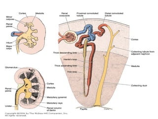 Corpusculum renalis malphigi : glomerulus -> sel mesangeal kapsula Bowman -> lamina parietalis (epitel selapis gepeng), visceralis (sel podosit ->pedikel ) polus vaskularis dan urinalis spatium kapsula Bowman / rongga urinarius Medullary ray : garis-garis longitudinal