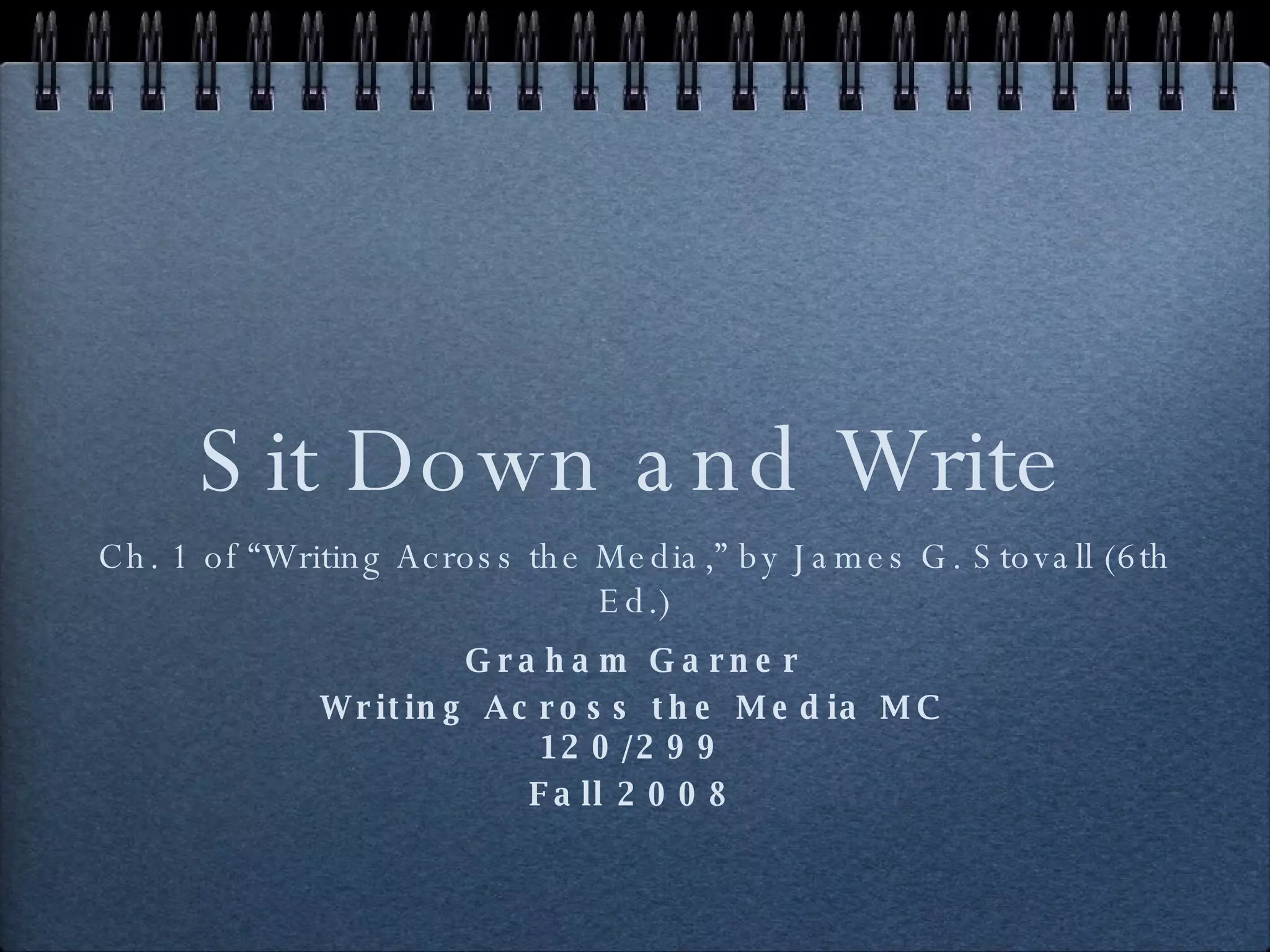 Writing is difficult work that requires total attention and humility. Good writing is efficient, precise, and clear without being showy. Writers should aim to inform, entertain, and persuade the general public, not just themselves or other writers. To do so effectively requires skills like spelling, grammar, research, and collaboration with other writers and editors. The writing process involves learning the subject, taking notes, writing drafts, and rewriting and editing to improve clarity, conciseness, and readability through techniques like using simple words and sentences, eliminating jargon, and varying sentence structures. Writing for mass media also requires versatility in different styles and formats to integrate words and images effectively across various channels like news, broadcasts, advertisements, websites,