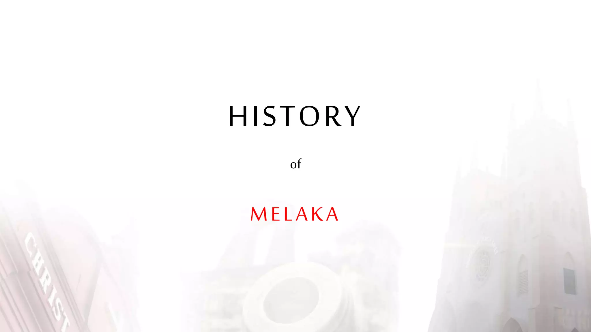 This document provides a history of Melaka from 1396 to present day. It begins with a Sumatran prince seeking sanctuary in Melaka and establishing the city. It then discusses the construction of the Malay fort for protection. It outlines the Portuguese, Dutch, and British rule over Melaka from 1511 to 1957 when Malaysia gained independence. Architectural styles that developed during each period are also described. The document concludes with sections on land use, vegetation, and landmarks in Melaka.