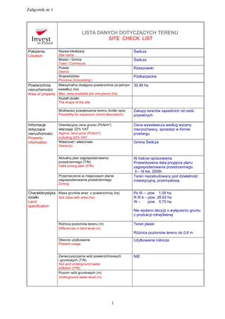 LISTADANYCH DOTYCZĄCYCH TERENU