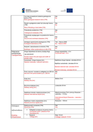 LISTA DANYCH DOTYCZĄCYCHTERENU