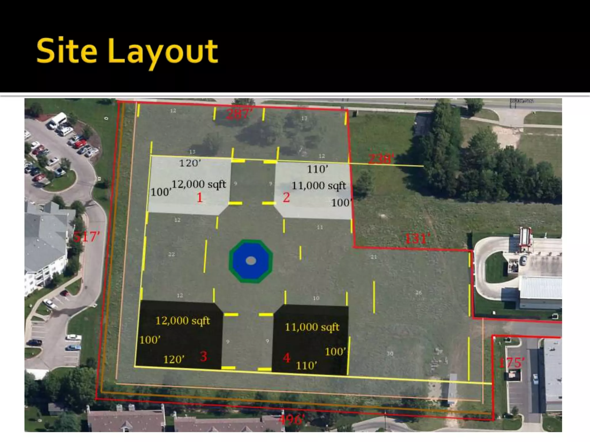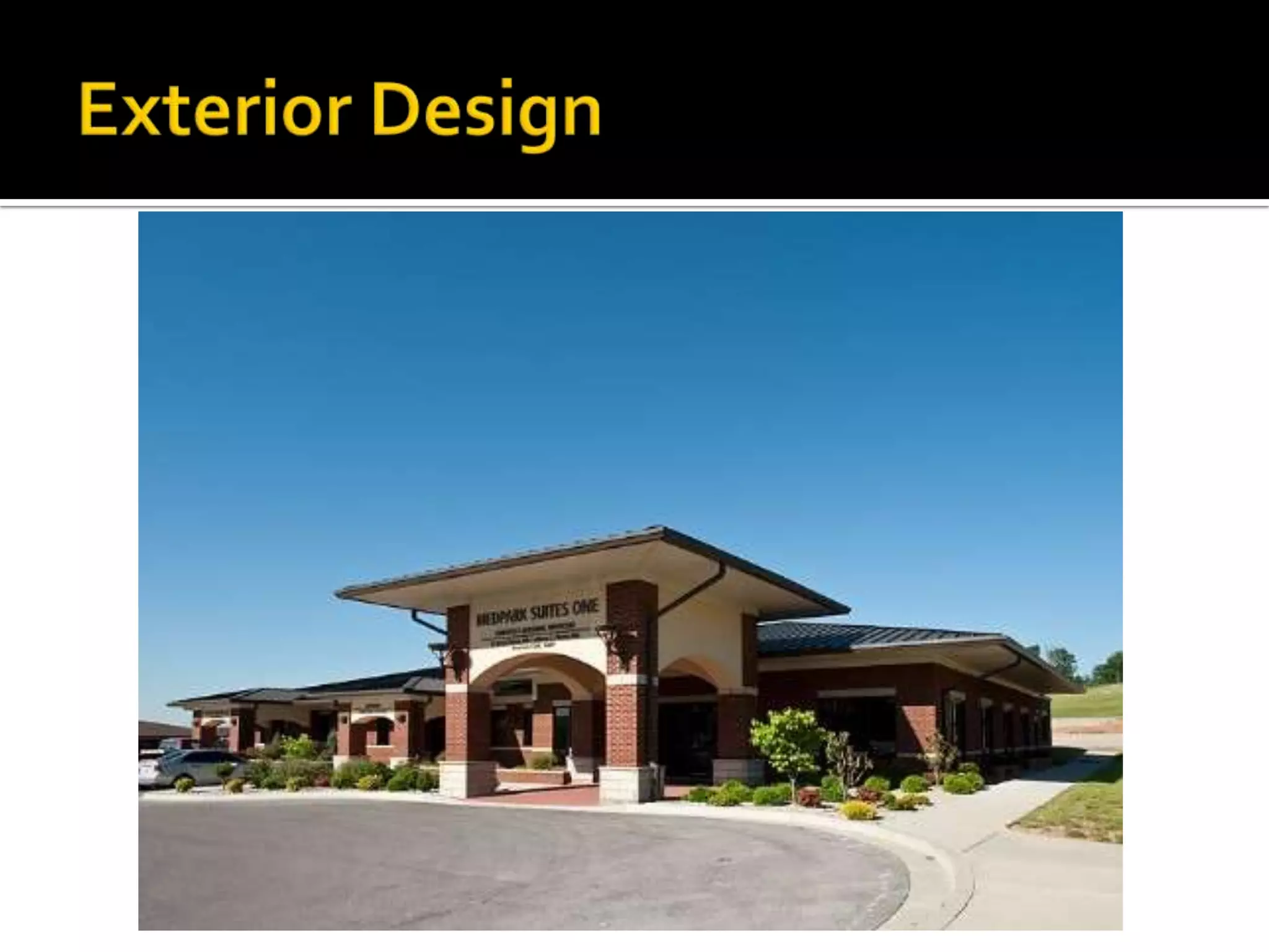 The document contains details on the site layout, exterior design, floor plan, and interior design for a proposed 46,000 square foot office building development with 230 parking spaces. It includes information on the phases, total square footage, number of tenants, drainage features, building structure, parking lot design, HVAC system, interior features, and references for additional information.